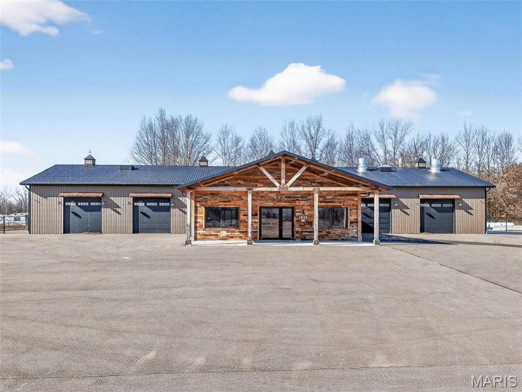Exceptional commercial opportunity featuring a 9,000+ square foot building situated on approximately 2.75+/- acres with major highway frontage for maximum visibility and accessibility. This impressive property is less than two years old and was thoughtfully designed to accommodate a wide range of commercial and industrial uses. The building offers multiple private offices, a functional kitchen area, and expansive shop space with high ceilings and multiple 14'x14' garage doors and one 20'x20' garage door, providing excellent clearance for large vehicles, equipment, and operations. A compressed air system runs throughout the building, enhancing efficiency and workflow. The back portion of the main structure includes container storage and a partially fenced area for secure outdoor storage or equipment staging. The hard surface parking area allows for ample employee and customer parking, as well as easy maneuverability for trucks and trailers. With 2.75+/- acres of ground, highway exposure, modern construction, and high-end improvements already in place, this property offers an outstanding opportunity for an owner-user or investor seeking a turnkey commercial facility in a prime location. Paint booth and additional acreage in back excluded but available upon request. Acreage is approximate; survey to govern.